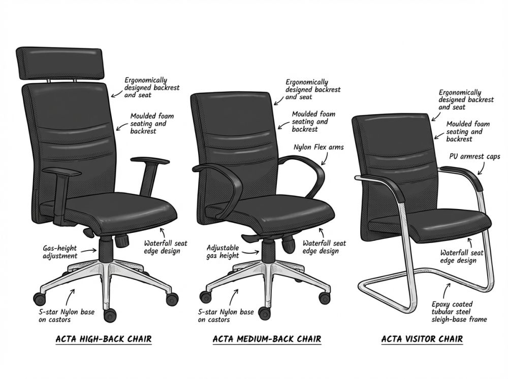 | Chair Type | High Back, Mid Back, Visitors |