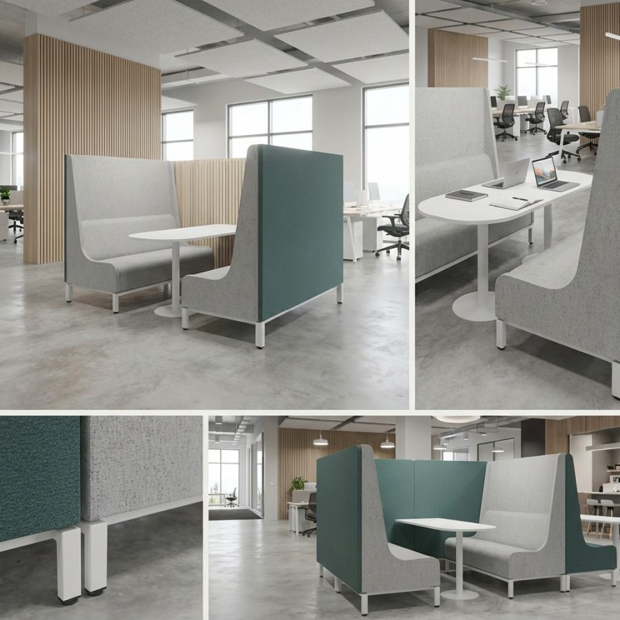 The cocoon cafe bench is a great way to create meeting spaces in an open-plan or in a canteen area, play with fabric texture, colour and specifications to get the look and “easy-clean” quality that you want.