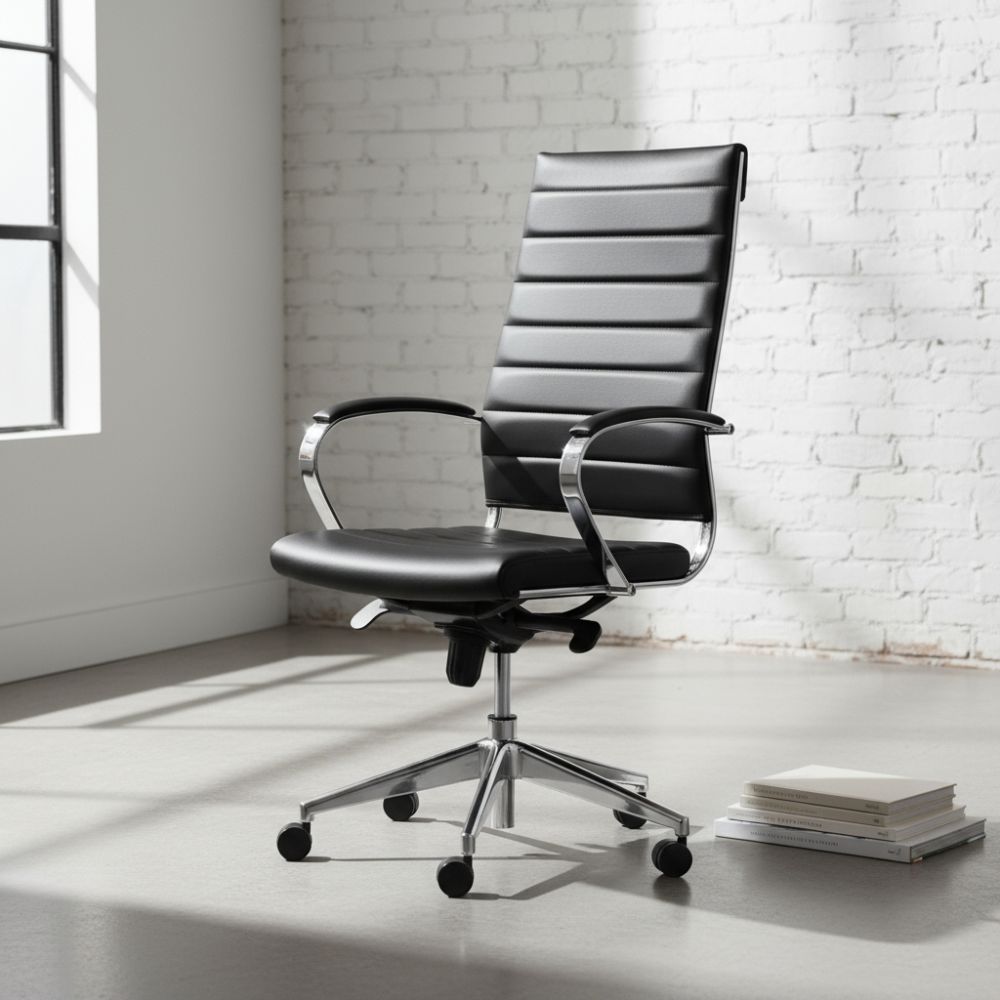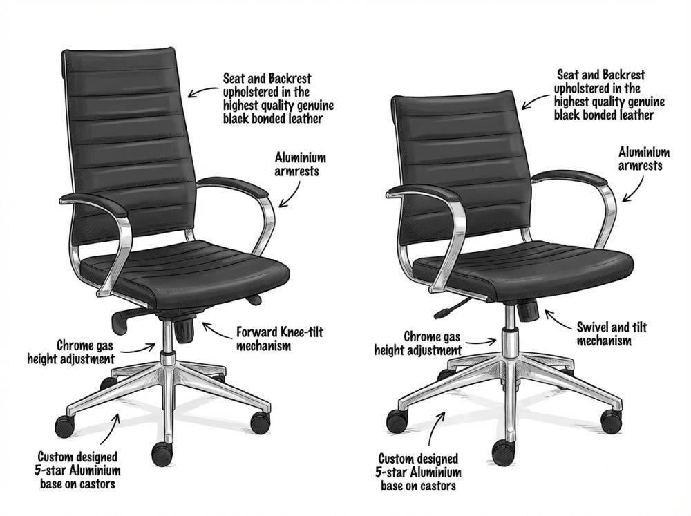 Seat and Backrest upholstered in the highest quality genuine black bonded leather.