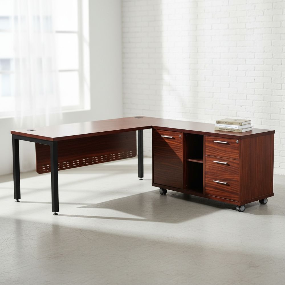 2000w x 400d Pedenza Consisting of 3 Drawer Lockable Pedestal, 2 Hinge Door Cupboard and Open CPU unit