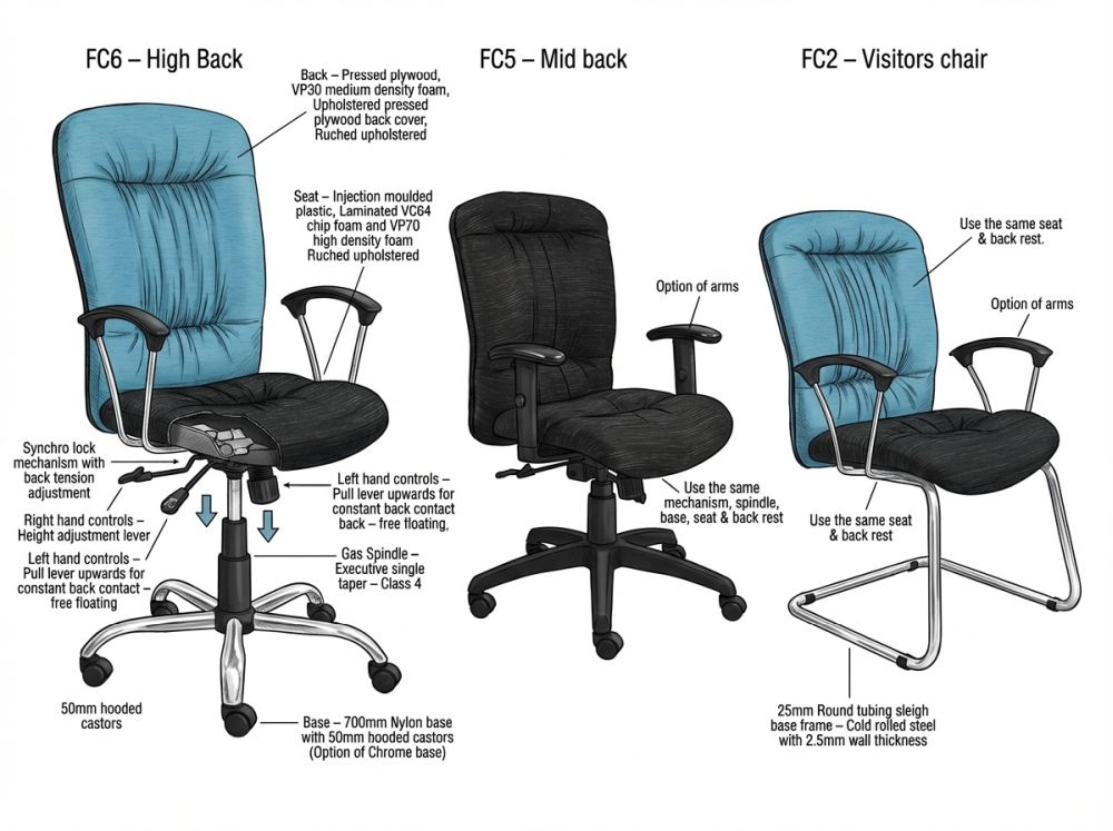 | Chair Type | High Back, Mid Back, Side Chair |