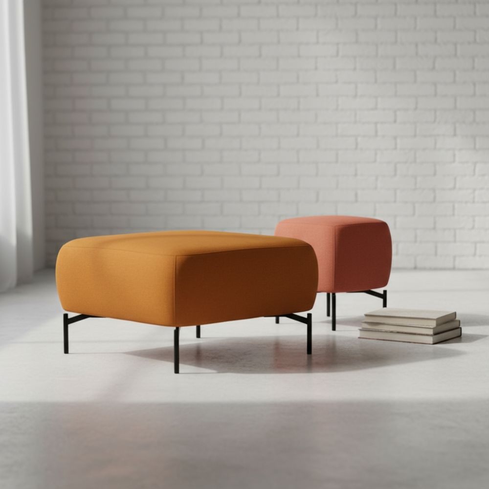 Upholstered seat in a medium density polyurethane foam. The legs feature a tubular epoxy with various finishes available.