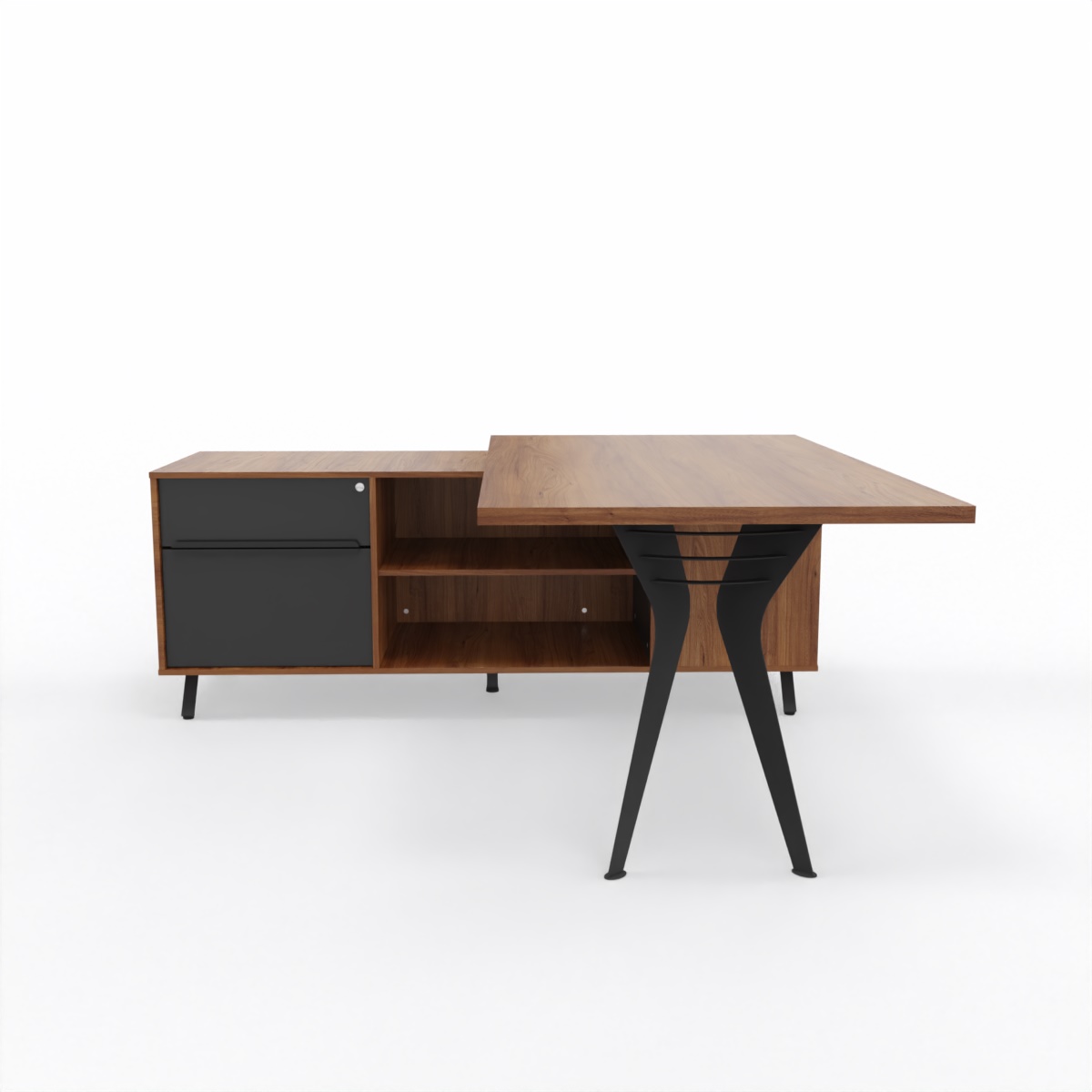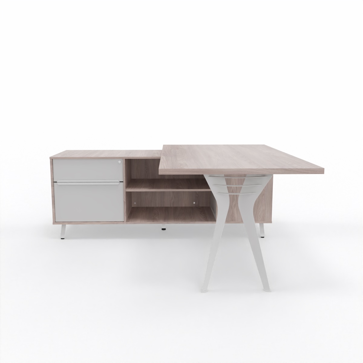 - 32mm Melamine top with a unique steel leg & lockable pedestal.