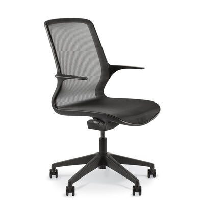 Ergonomic task chair comprising nylon shell structure with mesh insert on 5 star castor base with gas lift and locable tilt mechanism.  Choice of Black with Black mesh or White with Grey mesh