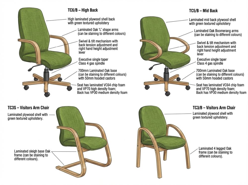 Base: 700mm Laminated Oak base with 50mm hooded castors