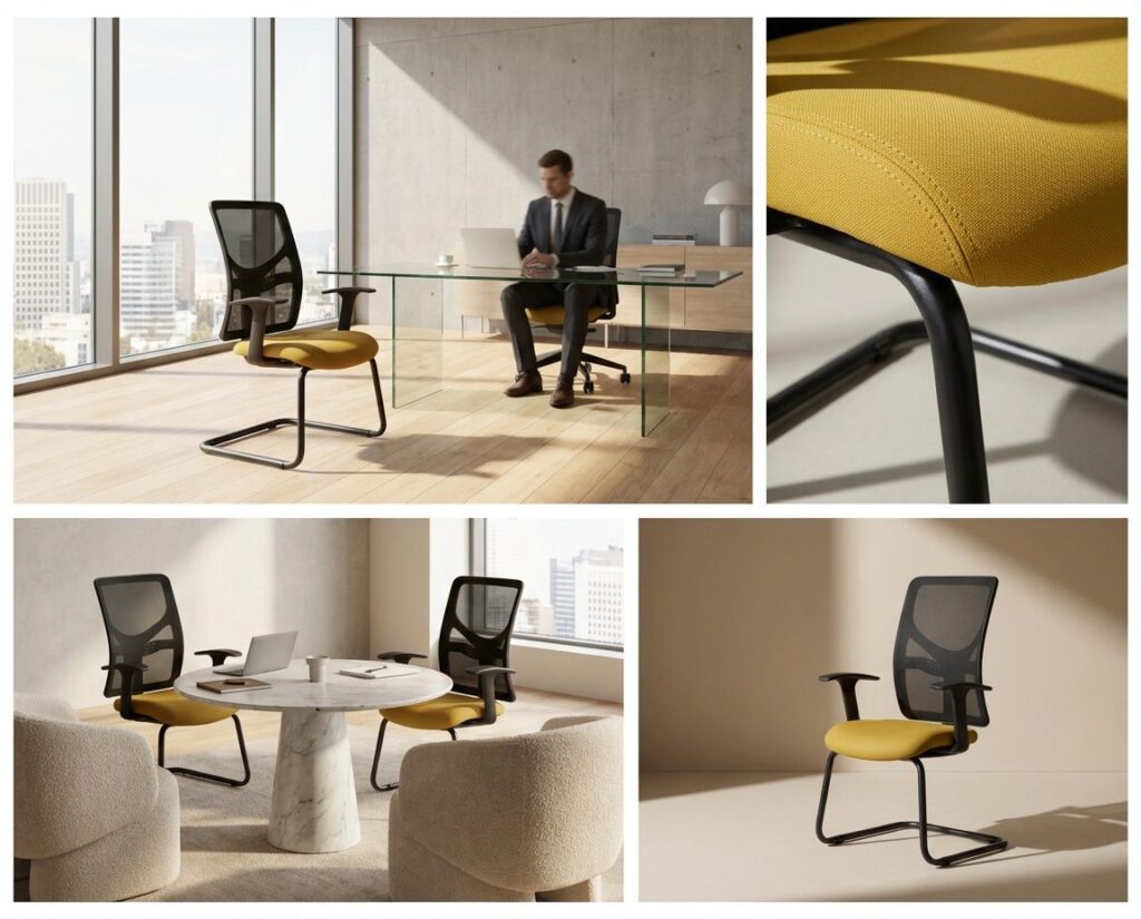 The Y-Not range is engineered for dependable performance in commercial environments. Its netted back reduces maintenance, while modular components allow dealers and project teams to adapt the chair to both budget and aesthetic needs.